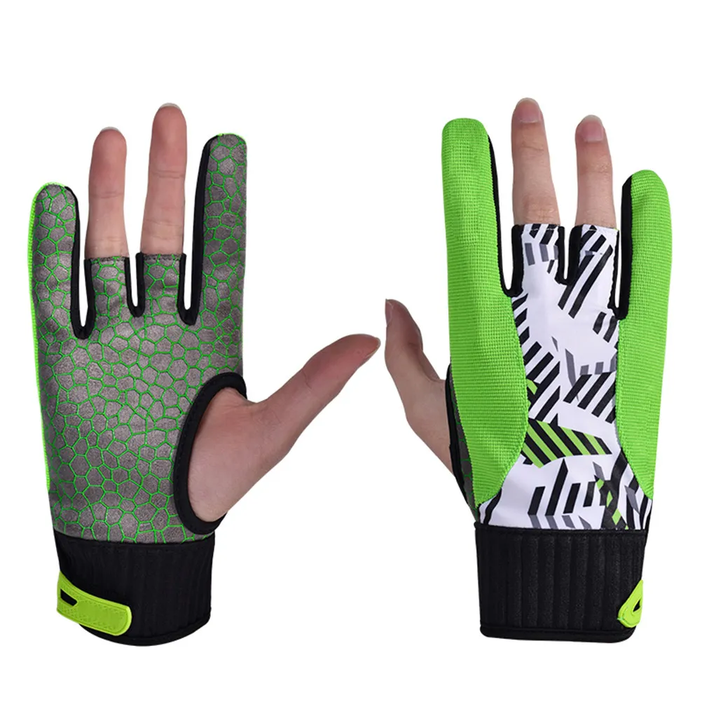 1Pair Professional Bowling Gloves Breathable Anti-Slip Silicone Pattern Wrist Support 3-Finger Exposure Design for Enhanced