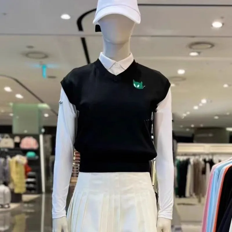 Korean Authentic Golf Vest Women Golf Wear 2025 Autumn Winter New Golf Knit High Quality V-neck Vest Top Women Golf Clothing
