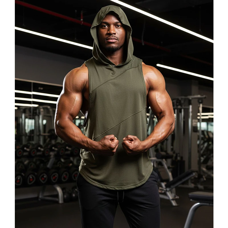 MCPW Men's Fitn Vest with Hood Sports Top No Sve Qui Dry Breathable Outdoor Running Training T-irt Polyester Spandex