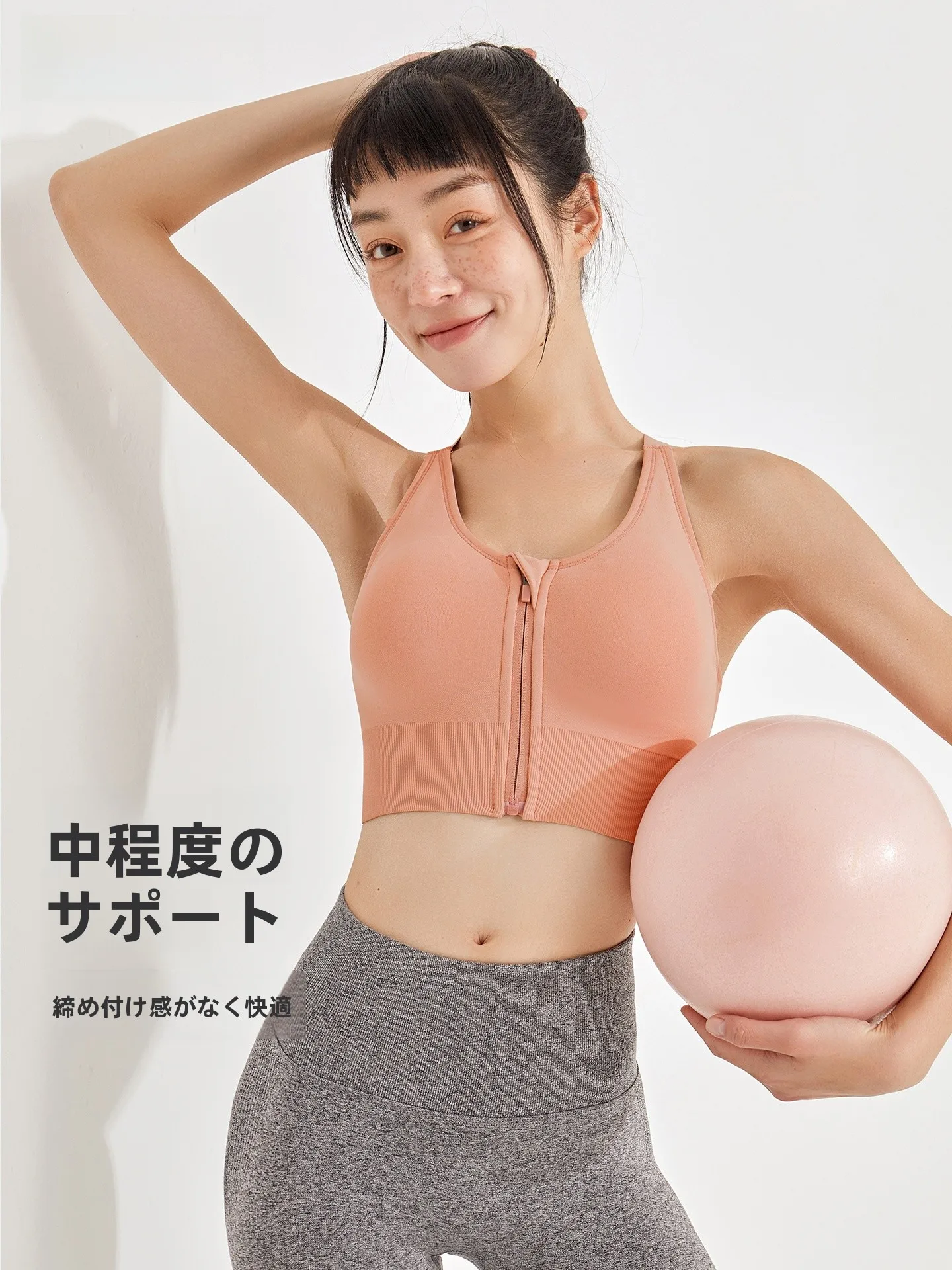 Sports Bra Women's Yoga Fitn Gym Vest Anti ake Zipper Front Running oproof Brtte Sports Underwear Nylon Fabric