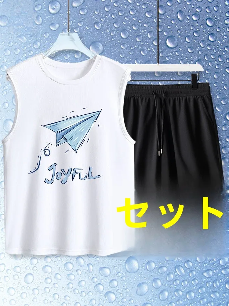 Ice Silk Mesh Men's Sportswear Set 2026 New Loose Breathable Fitness Trend Vest T-Shirt Polyester Fiber Short Pants Summer