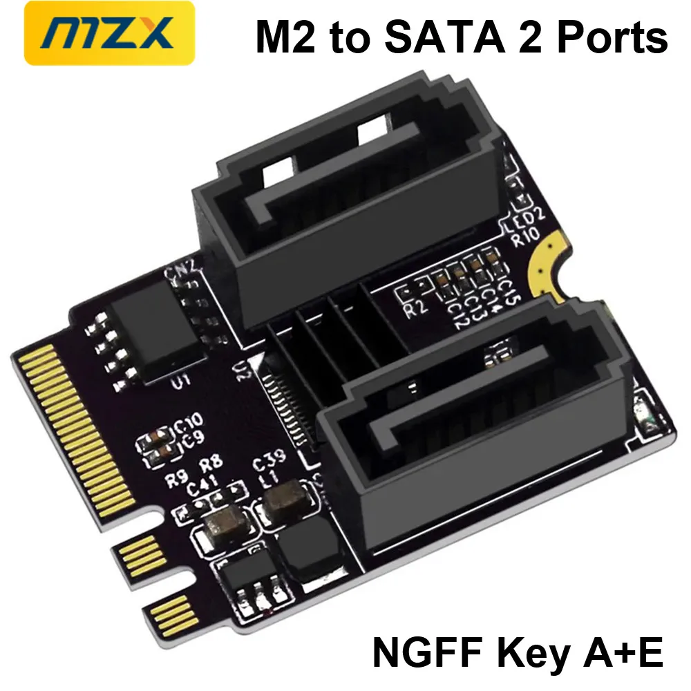 MZX M2 To SATA 3.0 2 Ports NGFF Converter Expansion Riser Card KEY A+E WIFI Extension M.2 SSD HDD Hard Disk Adapter No Driver