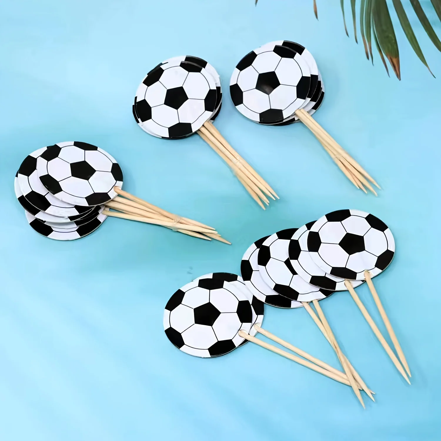 24pcs/set Soccer Ball Cupcake Toppers - Sports Theme Party Decorations for Baby Showers, Weddings & Birthdays