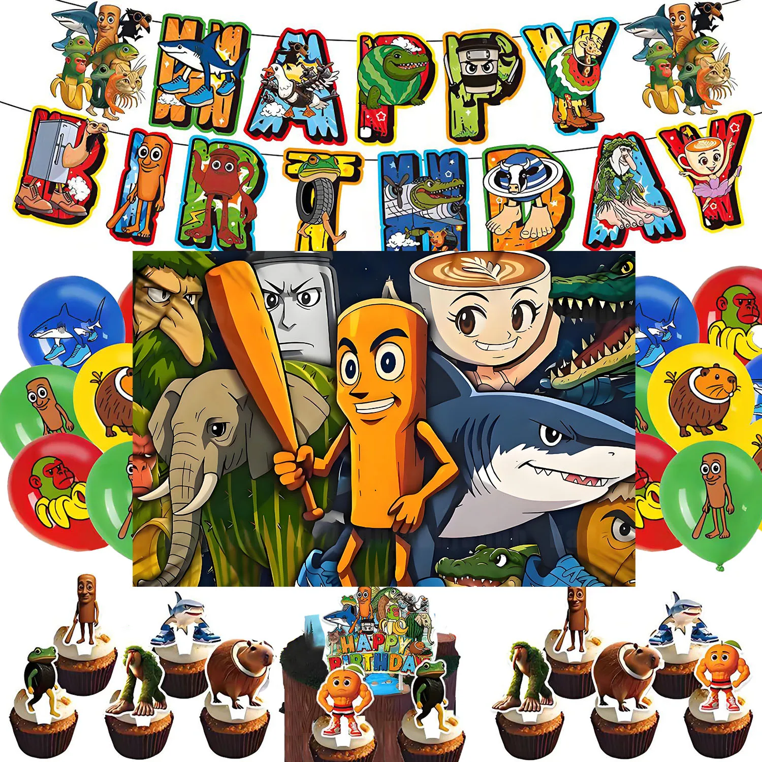 Brainrot Compleanno Tung Tung Sahur Tralalo Theme Kids Birthday Game Brainrot Banner Background Balloon DIY Home Party Supplies