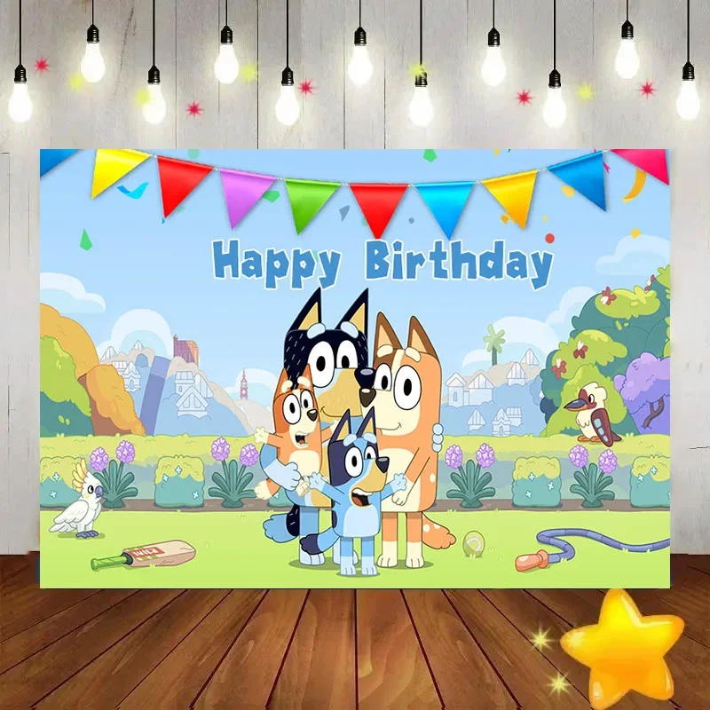 Cartoon Bluey Family Photography Background Cartoon Dog Bingo Cloth Photo Shooting Backdrops Birthday Party Decoration Banner