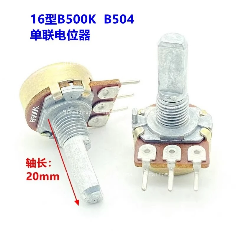 10PCS WF 16 Type B500K 3-Pin Single Gang Amplifier Audio Speaker Treble and Bass Volume Potentiometer 20mm D-Type Shaft