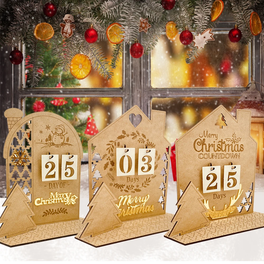 1Set Christmas Wooden Countdown Calendar Santa Claus Merry Christmas Advent Decorations Xmas Wooden Home Decoration