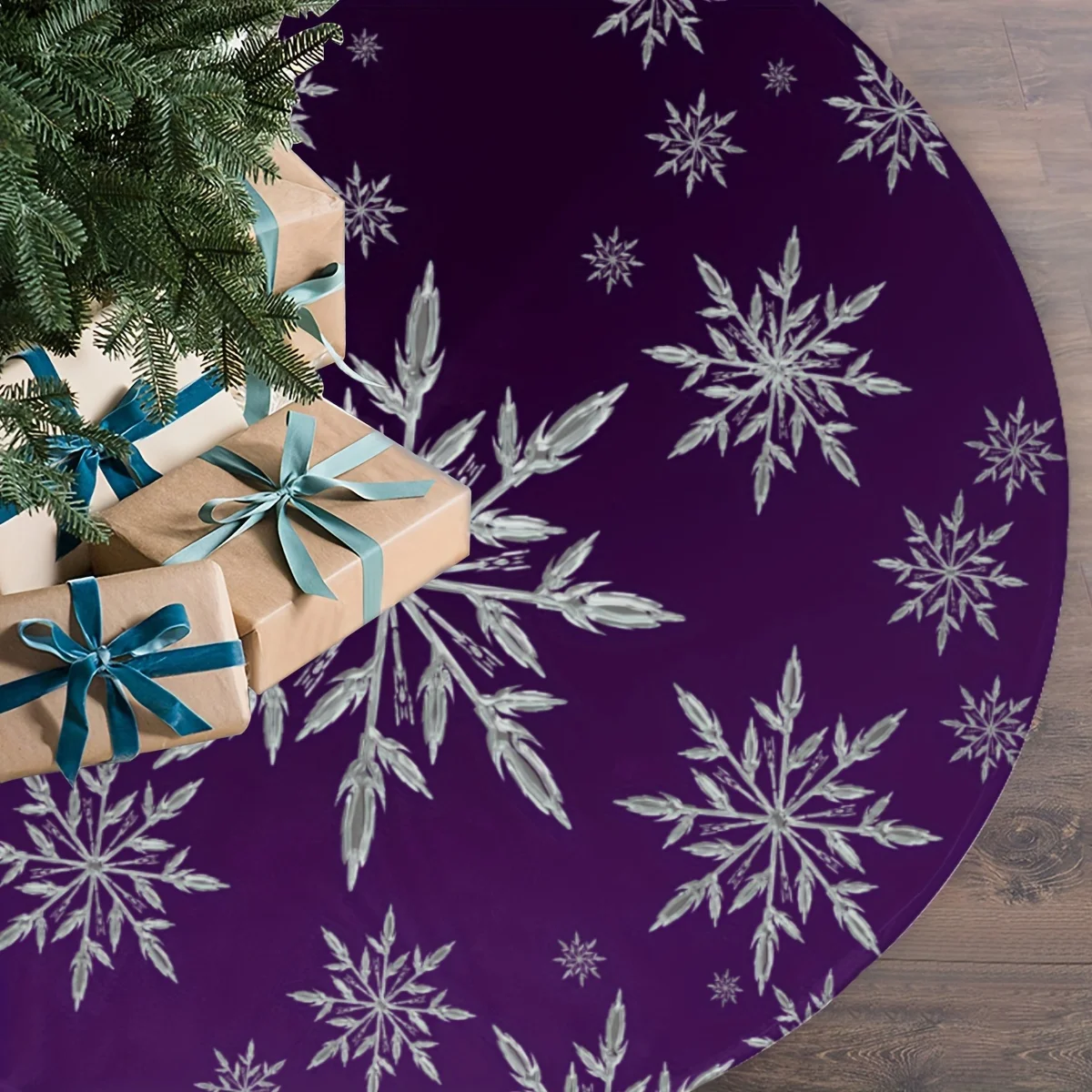 VIKAMA Deep Purple Snowflake Print Christmas Tree Skirt Festive Family Decor Seasonal Atmosphere Christmas Tree Skirt Pad