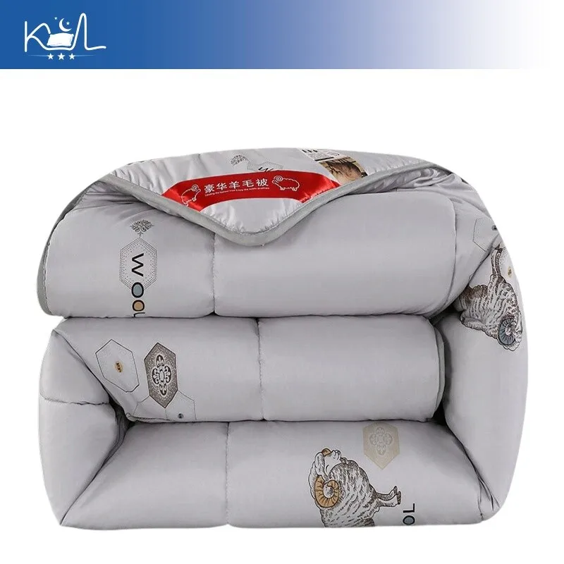 Sheep Printed Wool Comforter Luxury 100% Natural Wool Filled Quilt Ultra Soft Warm Thick Winter Bedding for Bedroom