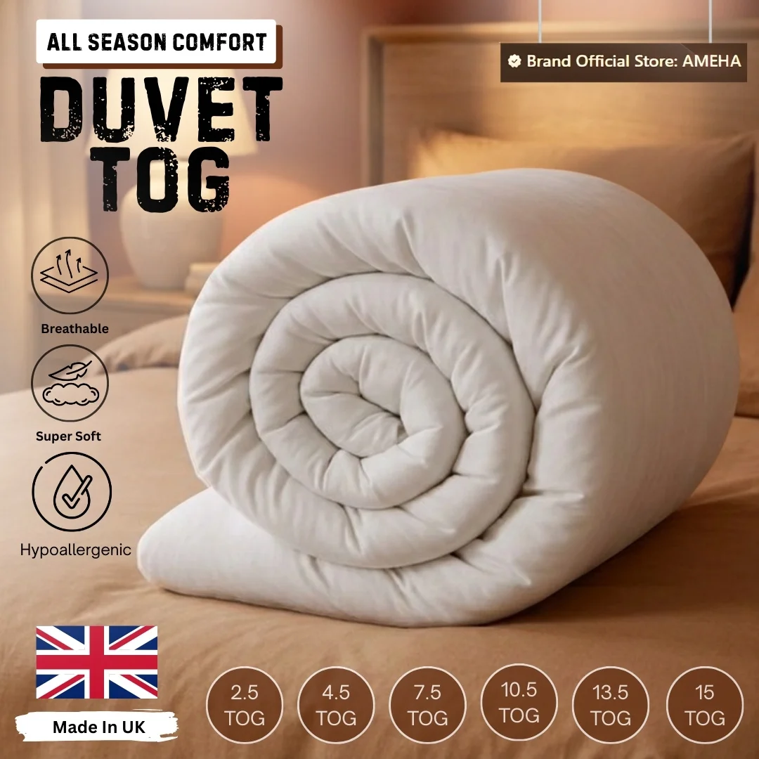 Season Hotel Style 1PC Duvet Quilt (4.5, 10.5, 13.5, 15 Tog) – Ultra Soft Microfiber Comforter, Breathable Hollowfiber Filli