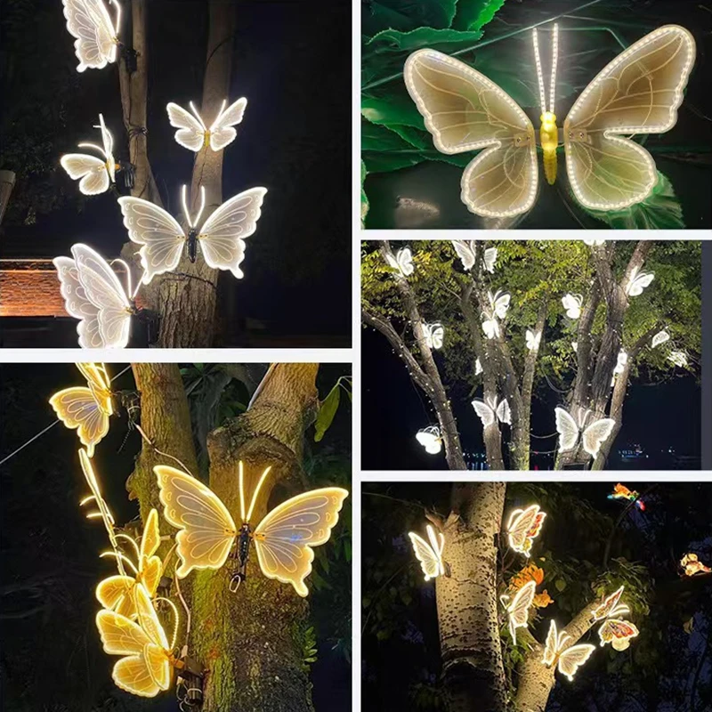 1Pcs 40cm high LED Outdoor Simulation Dynamic Static Butterfly Lights Holiday Party Home Christmas Decorations