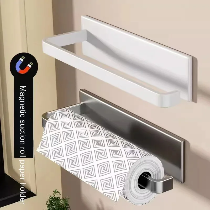 Kitchen paper holder, wall-mounted refrigerator magnetic paper towel holder, side cabinet for storing items, non-drilling fresh