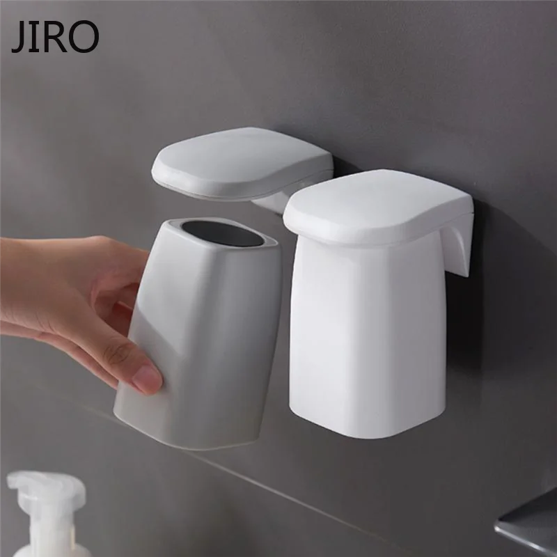 1Pc Magnetic Toothbrush Cup Wall Mount Couples Family Toothbrush Holder Fashion Minimalist Solid Color Bathroom Organizer