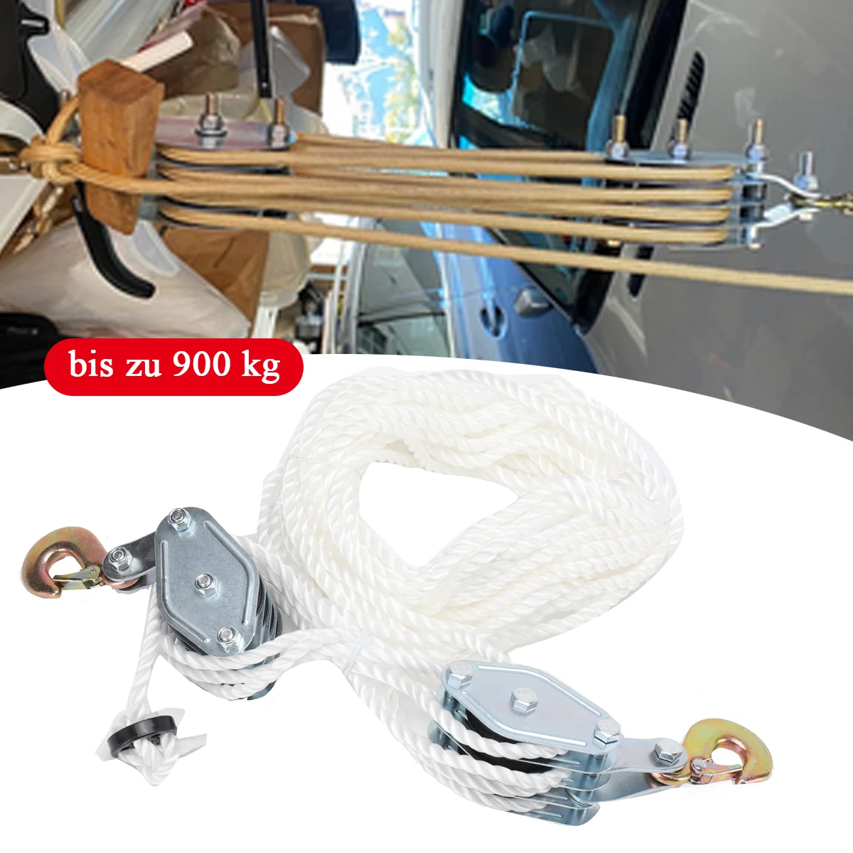 270° Rotatable Rope Pulley Block Zinc Alloy Hook Handheld Crane Heavy Duty Polyethylene Rope Pulley Hoist Manual Lifting Device
