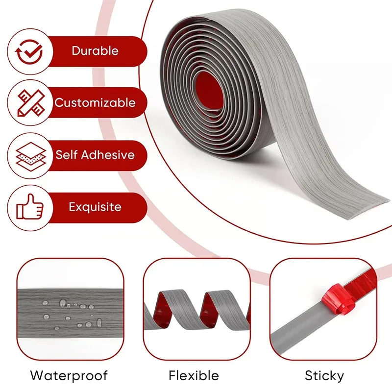 Home Decor PVC Baseboard Molding Trim Flexible Vinyl Wall Border Sticker Self-Adhesive Waterproof Skirting Line Living Room