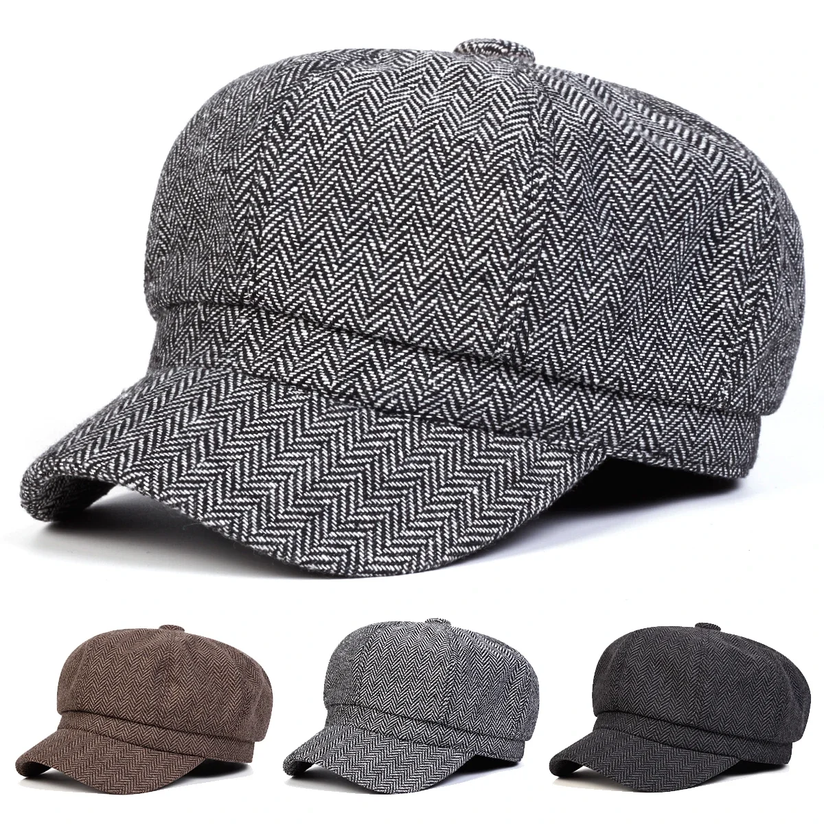 Unisex Herringbone Personality Newsboy Hat Spring Autumn Retro Beret Hats Wild Casual Hats Octagonal Cap