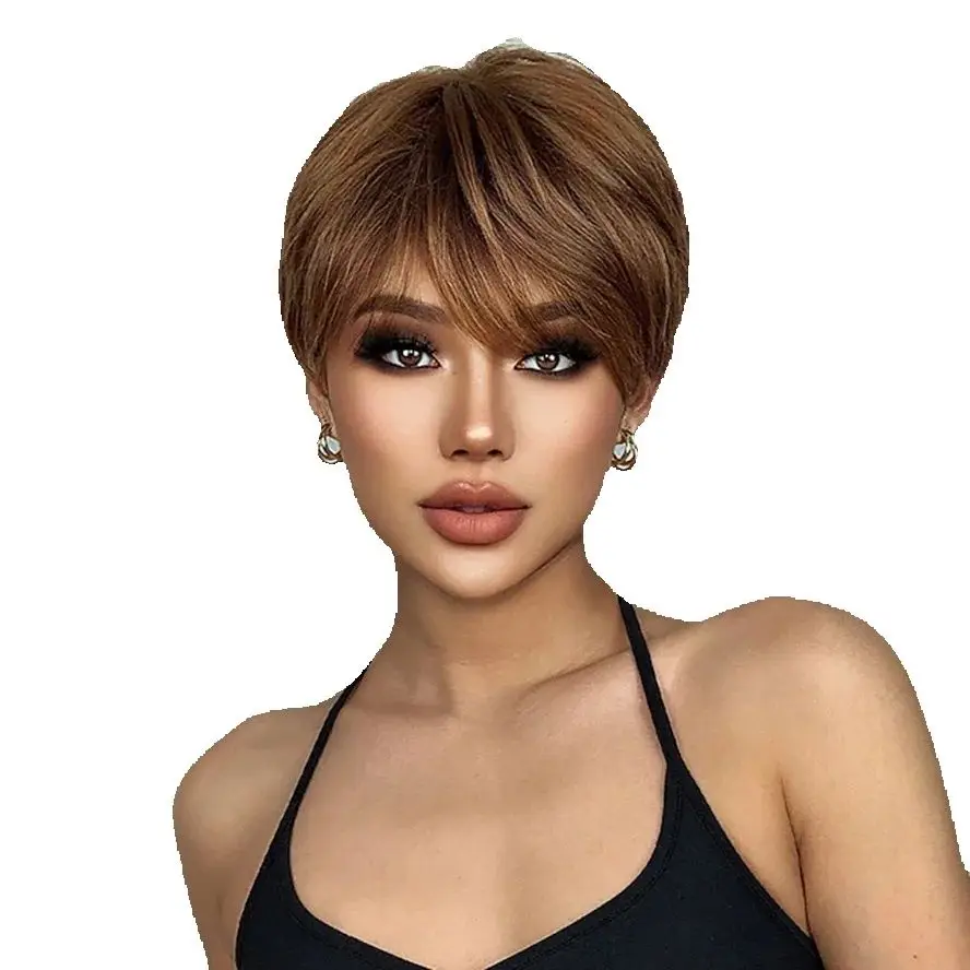 Hand-Tied Lace Front Wig Light Brown Ombre Remy 100% Human Hair Wigs Natural Layered Short Bob Lace Frontal Hair for Women Daily