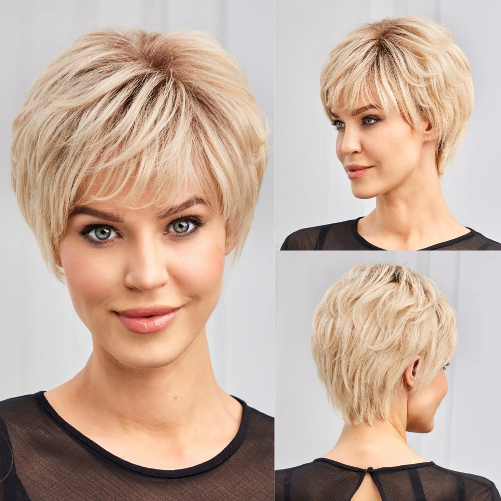 Hand-Tied Lace Front Wig Platinum Blonde Ombre Remy 100% Human Wigs Natural Layered Short Bob Lace Frontal Hair for Women Daily