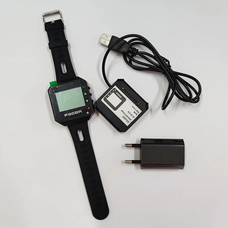 Wireless Wrist Watch Pager Text Receiver POCSAG Pager 137-930mhz Support Multi-language GP2015W Charger for Hotel Restaurant