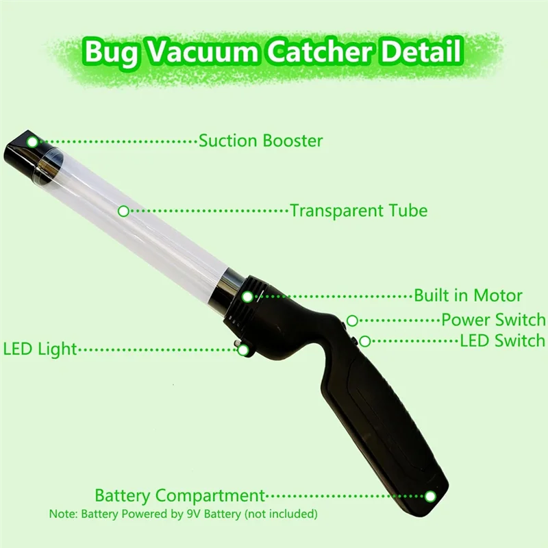 NDIN-2 Pack Bug Vacuum Catcher Small Insect Catcher Tool With LED Light Bug Sucker For Home Garden Insect Catcher