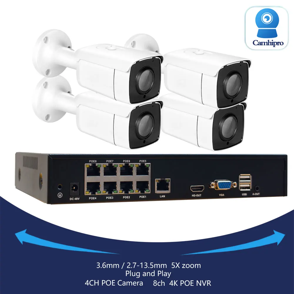 4CH 4K POE System Surveillance Vedio 5MP/8MP Security Камера POE 5x Zoom IR Led Two Way Audio 4K 8CH POE NVR Kit Plug And Play