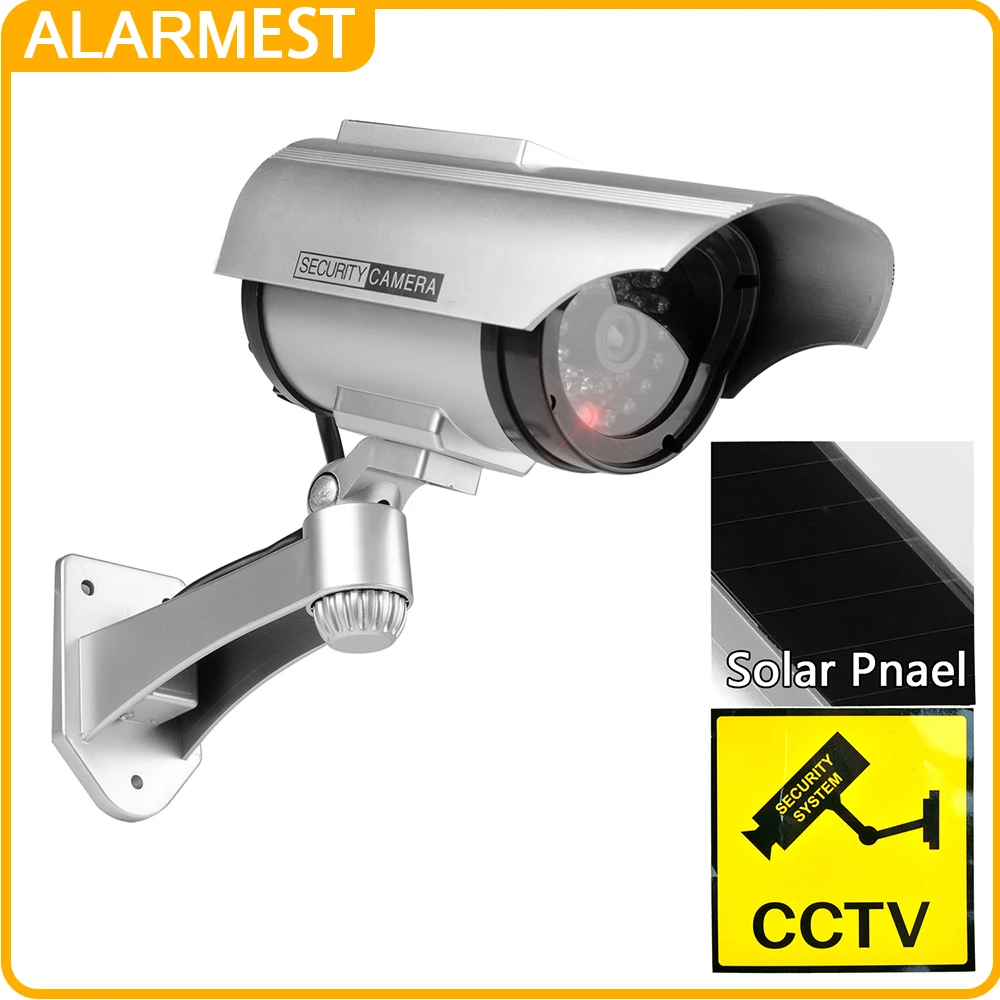ALARMEST Solar Power Fake Camera Dummy Waterproof Security CCTV Surveillance Camera With Flashing Red Led Light Outdoor Indoor