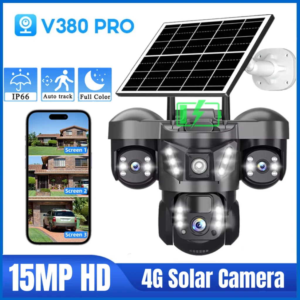 15MP Triple Lens PTZ Solar Security Camera Outdoor 4G 10X Zoom Auto Tracking Triple Screen Wireless CCTV Waterproof Surveillance
