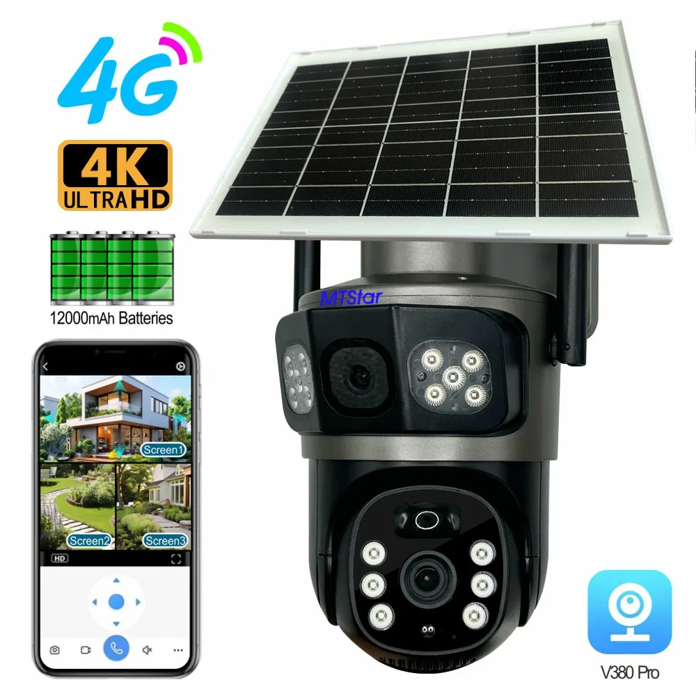 V380 Dual Lens solar Camera PTZ WIFI 4G PIR Human Detection Night Vision Waterproof Security Video CCTV Monitor 8MP 4K Battery