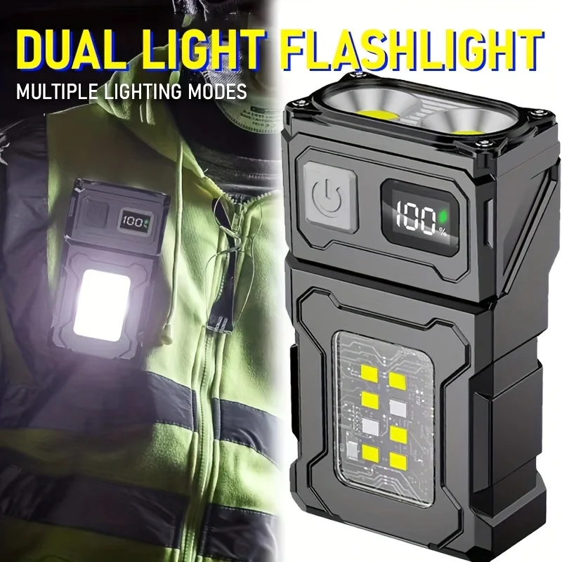 MINI USB Rechargeable LED Flashlight Portable Tail Magnet Flashlight Super Bright Camping Lantern Side COB Emergency Light