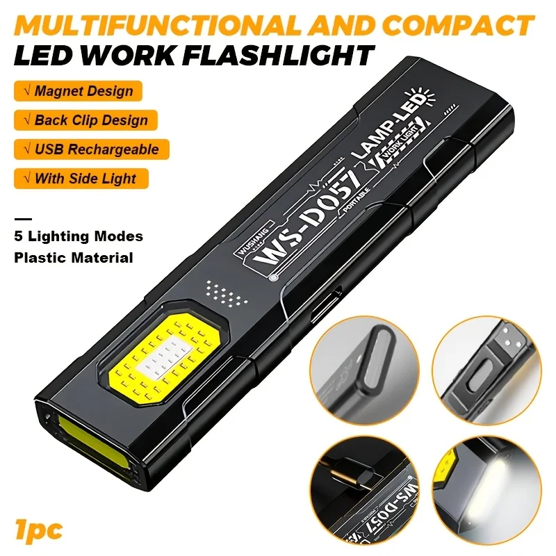 Multifunctional Rotatable Work Light USB Rechargeable Flashlight with Magnet/Hook,Ideal for Auto Repair Inspection and Emergency