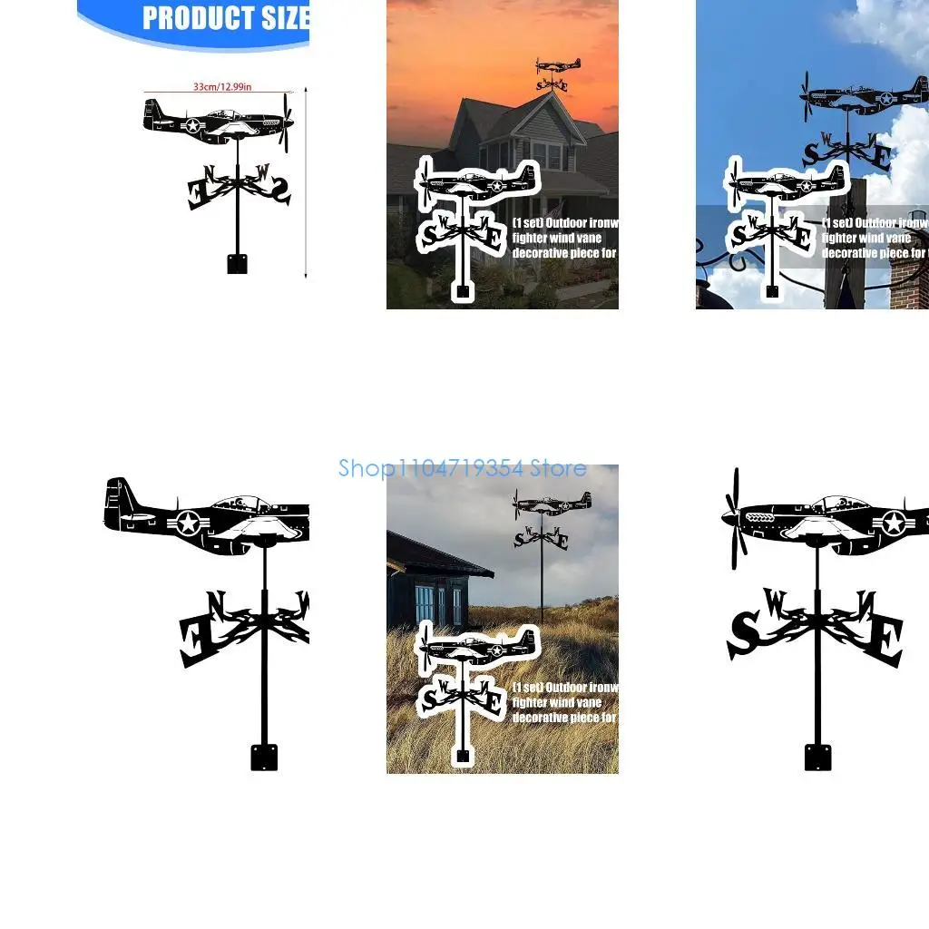 0XLD Retros Aviation Themed Metal Weathervane Easy Assembly Wind Direction Detector For Outdoor Spaces