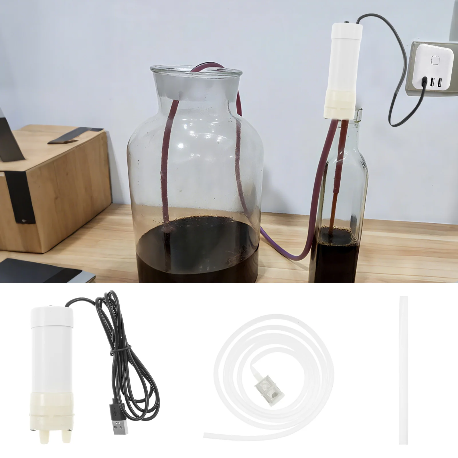 USB Electric Wine Pump DC 5V Portable Safe Self Priming Beer Transfer Pump 2 M Tube for Home Brewed Wine Beer Mead for Home