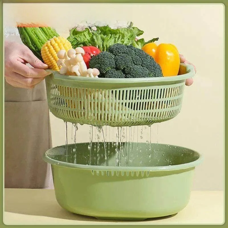 Double Layer Drain Basket Kitchen Supplies Living Room Tea Table Fruit Di Basket Vegetable Waing Basin Drain Basket