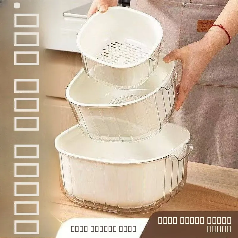 Double-Layer Plastic Drain Basket Simple Kitchen Living Room Home Use Fruit Waing Di Simple Fre Nordic Sle Wedding