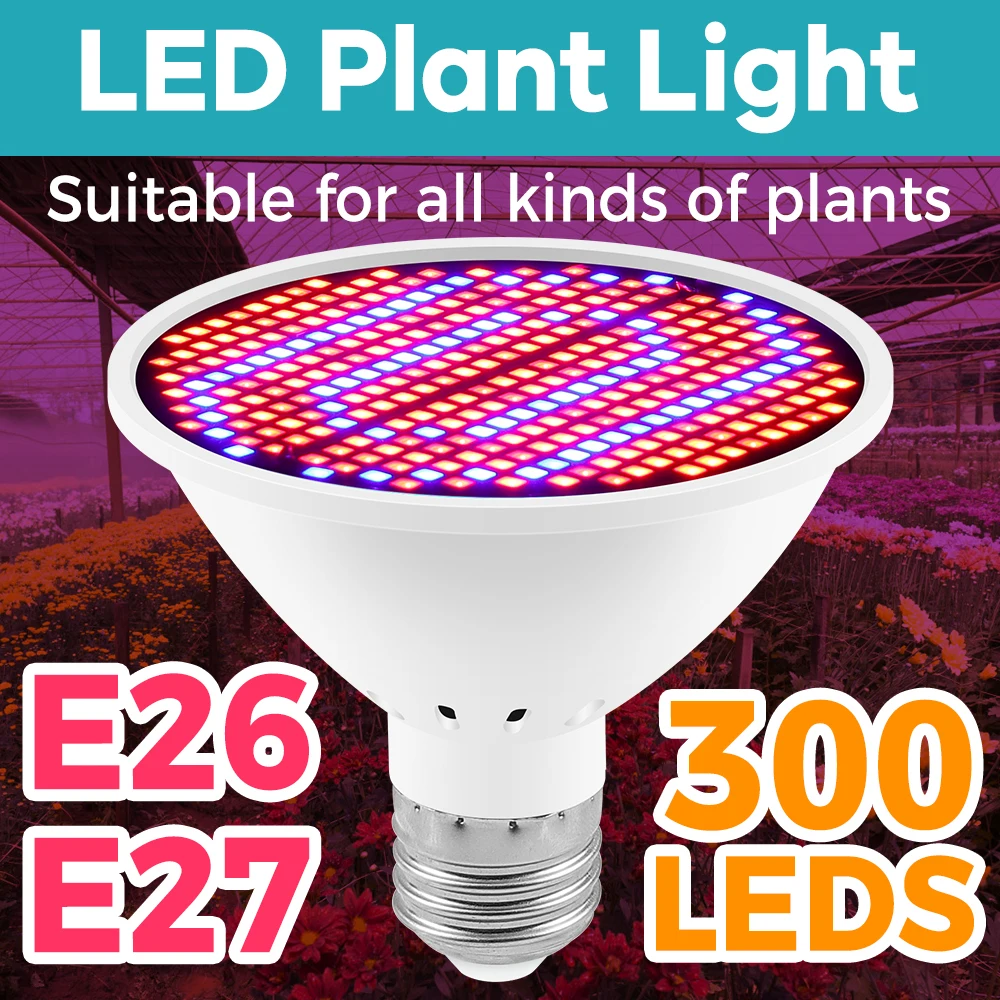 300W LED Plant Grow Light Bulb E27/E26 Full Spectrum Hydroponic Growing Lamp Growth Box Seeds Cultivation Light Bulbs Deformable