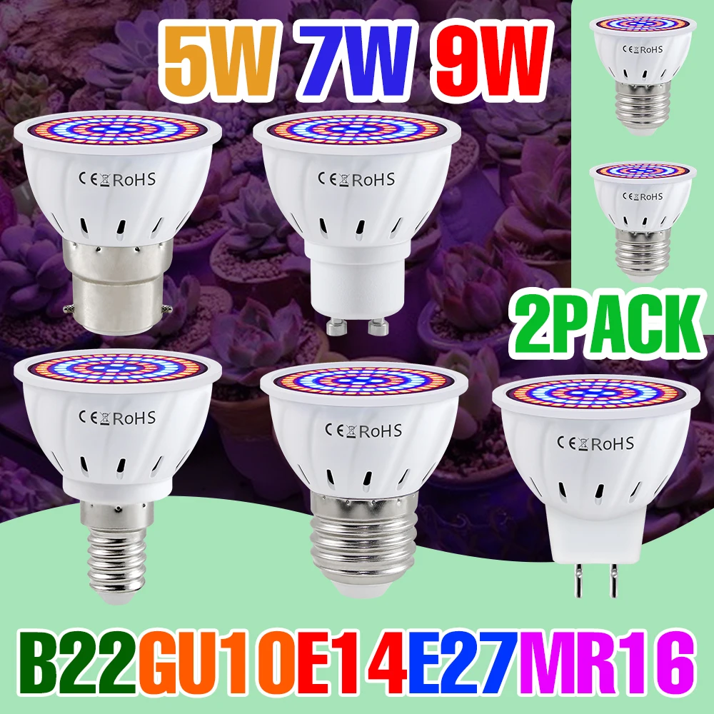 2Pcs 9WLED E27/E14 Plant Grow Light Bulb GU10 Full Spectrum Cultivation Lamp MR16 220V Indoor Bulbs B22 For Potted Seed Flowers