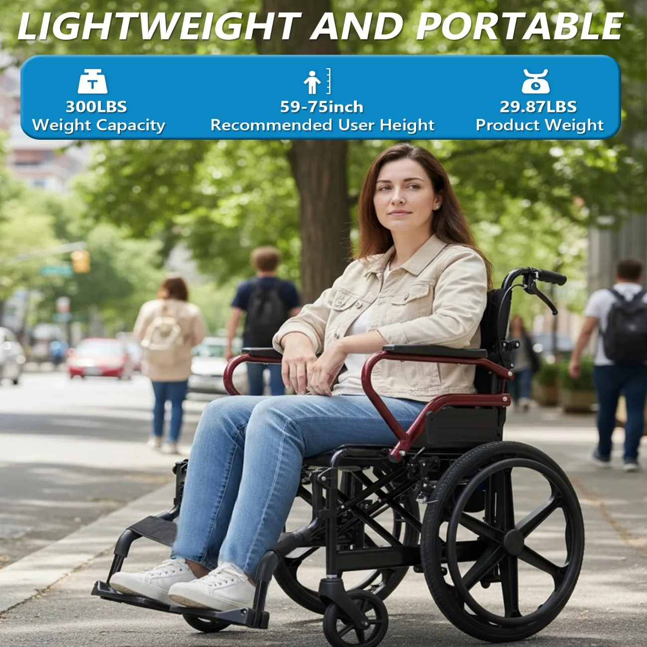 33.07-36.22in Foldable Wheelchair 220lbs Capacity Transport Wheelchair Lightweight Folding Wheelchair for Elderly or Disabled