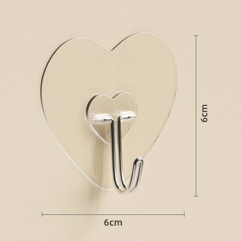 Multi-Purpose Hooks Storage Rack Heart Shape Transparent Hooks Non Punching Plastic Love Hangers Holder Self Adhesive Key Towel