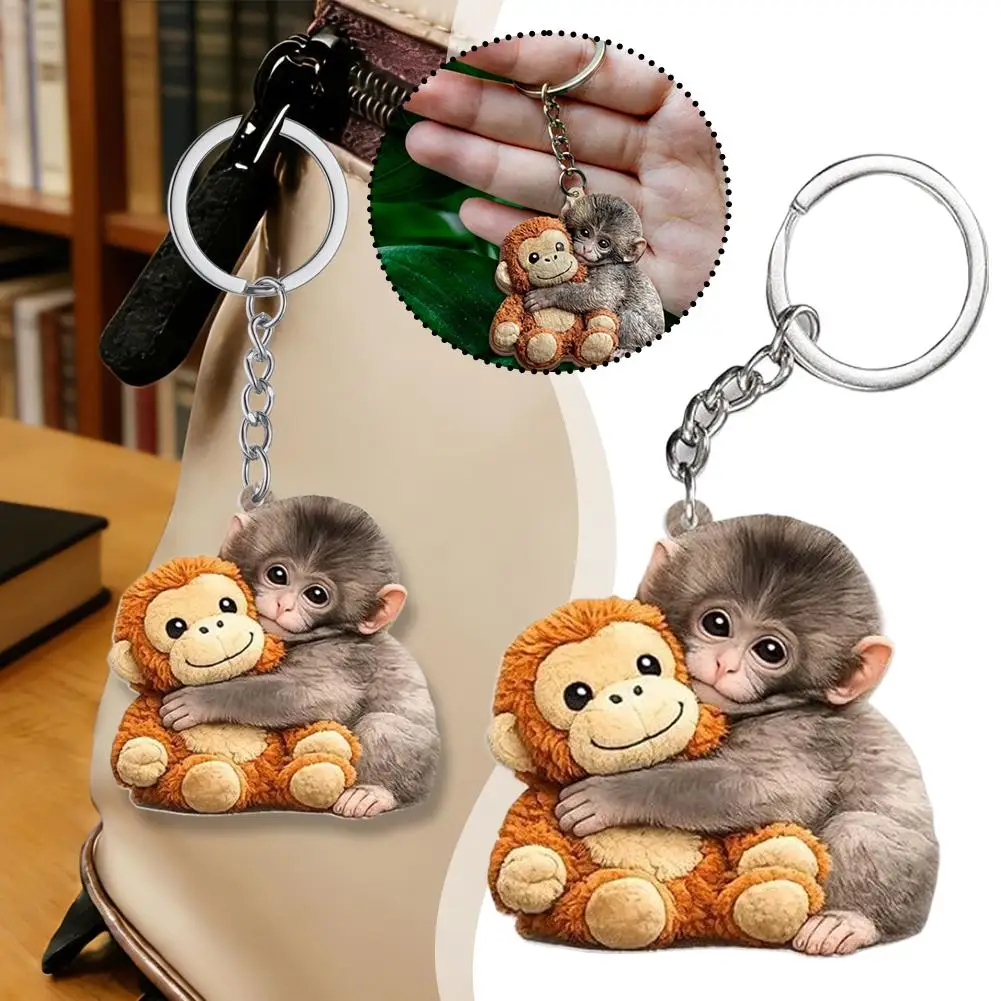 Lightweight Exquisite Funny Keychain Backpack Accessories Acrylic Monkey Doll Design Bag Pendant Translucent Cute Hanging Key