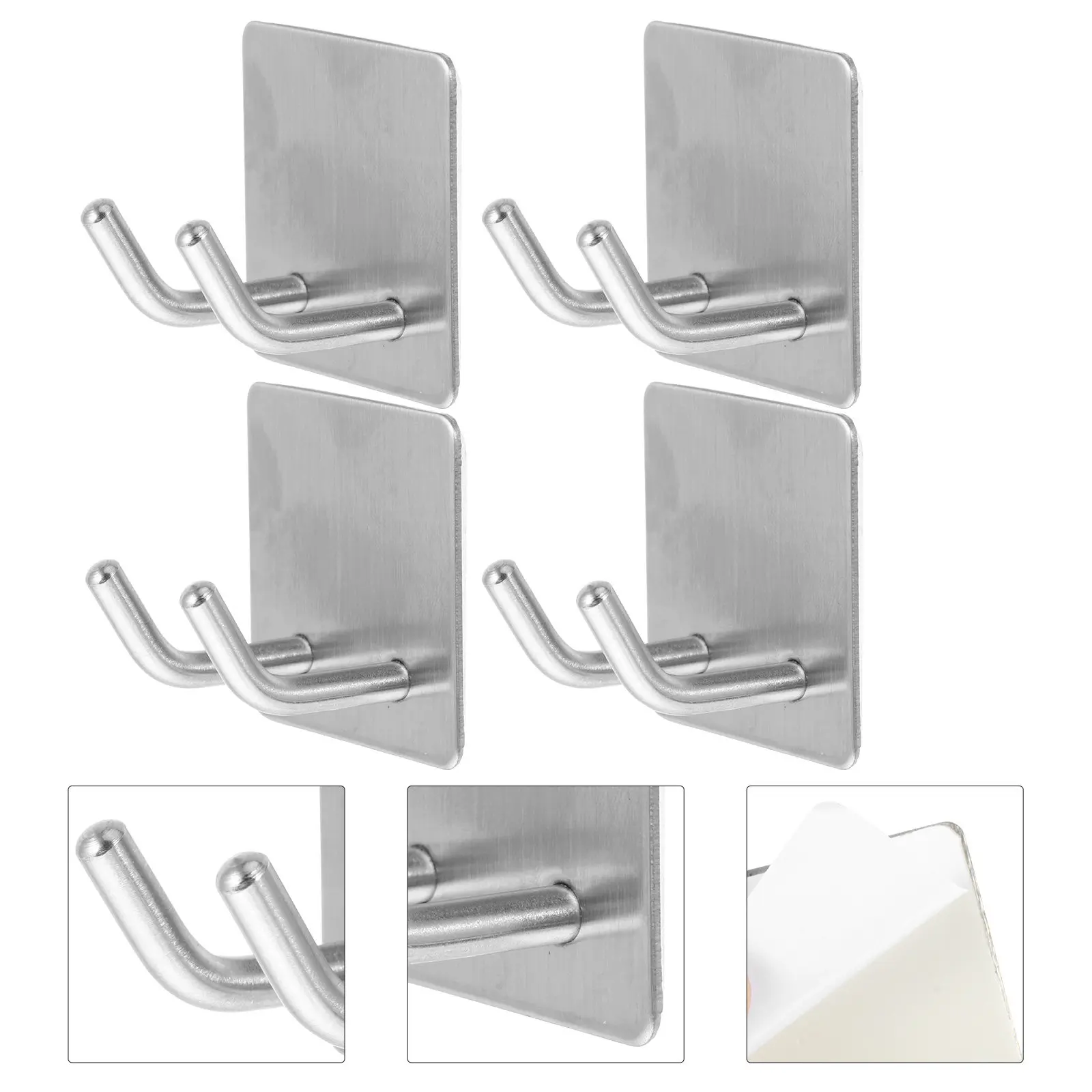 4Pcs Stainless Steel Adhesive Wall Hooks Traceless No Drill Multipurpose Hooks for Shower Towel Loofah Robe Jacket Purse Storage