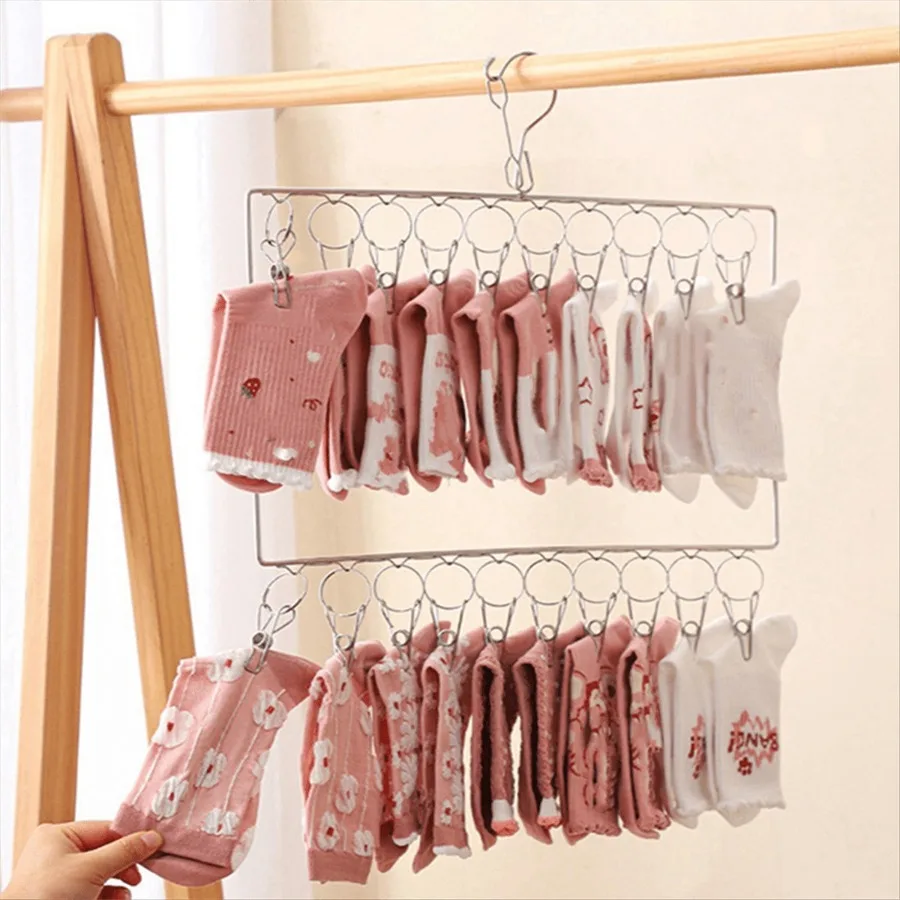 Household Unmarked Underwear Drying Rack 20 Clip Stainless Steel Sock Rack Clothes Rack Balcony Storage Racks