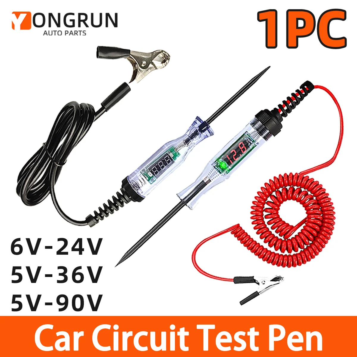 YONGRUN 1PC Automotive Voltage Circuit Tester Digital Led Long Probe Pen 5V 6V 24V 36V 90V Circuit Detection And Diagnostic Tool
