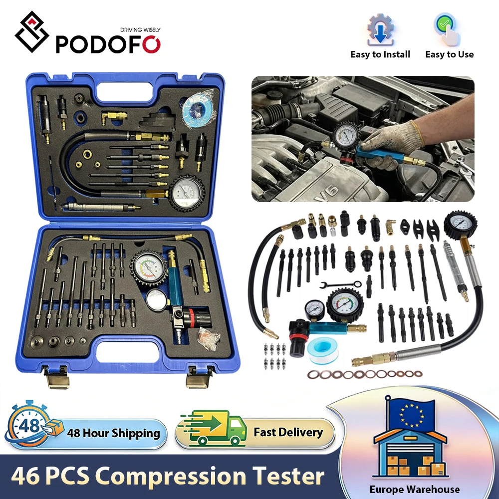 Podofo 46PCS Compression Tester/Pressure Loss Tester Engine Tester/Auto Cylinder Leak Tester Kit For BMW Chrysler Fiat Ford