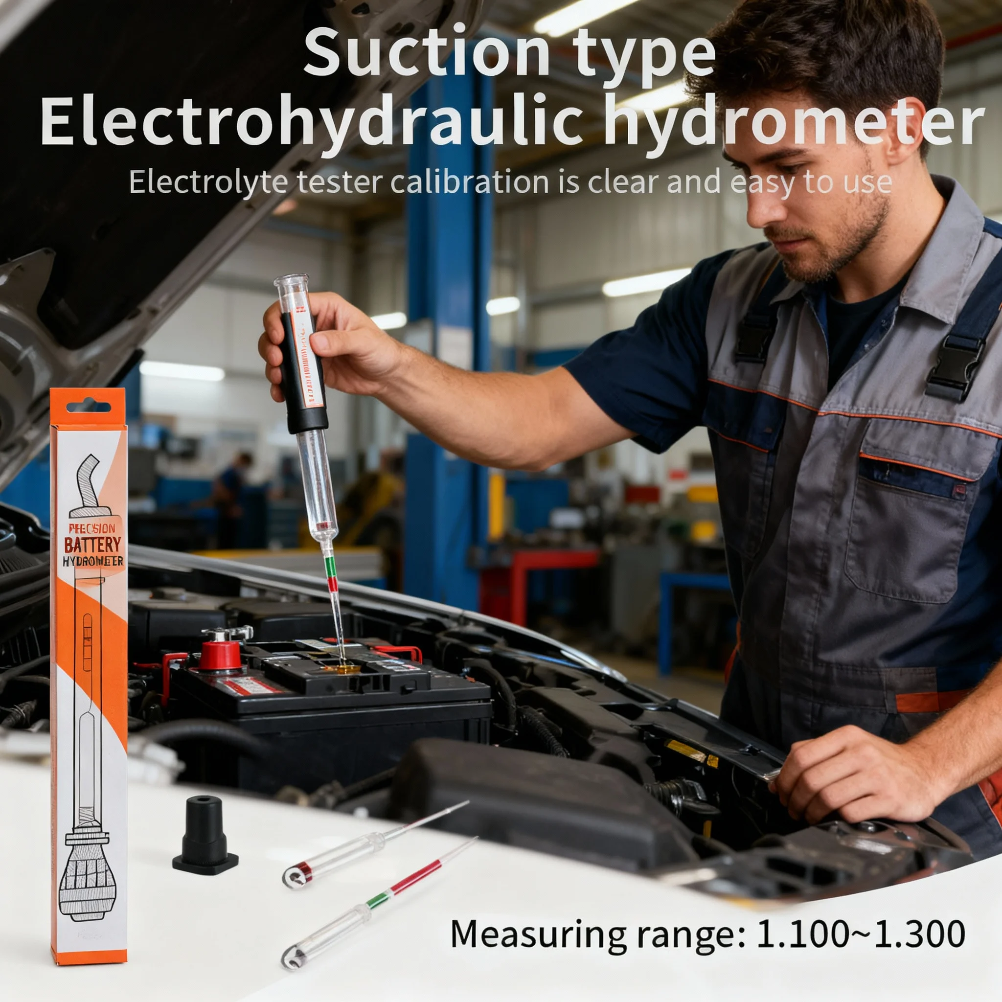 Portable Suction Type Battery Hydrometer 1.10-1.30 Electrolyte Density Gauge Glass Rubber Battery Testing Tool for All Cars