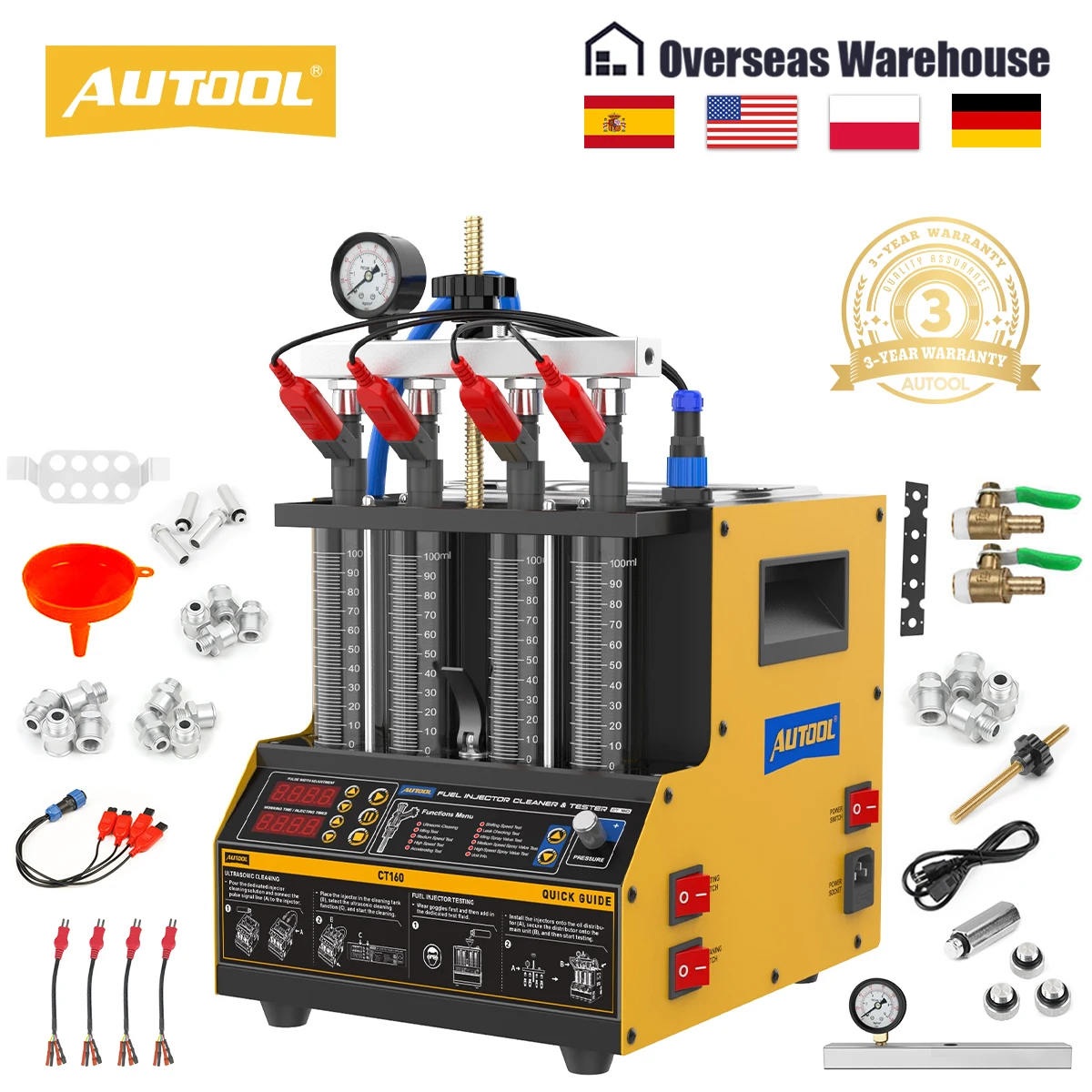 AUTOOL CT160 4-Cylinders Car Fuel Injector Heating Cleaning & Tester Machine Automotive Injector Nozzle Cleaning Tester Machine