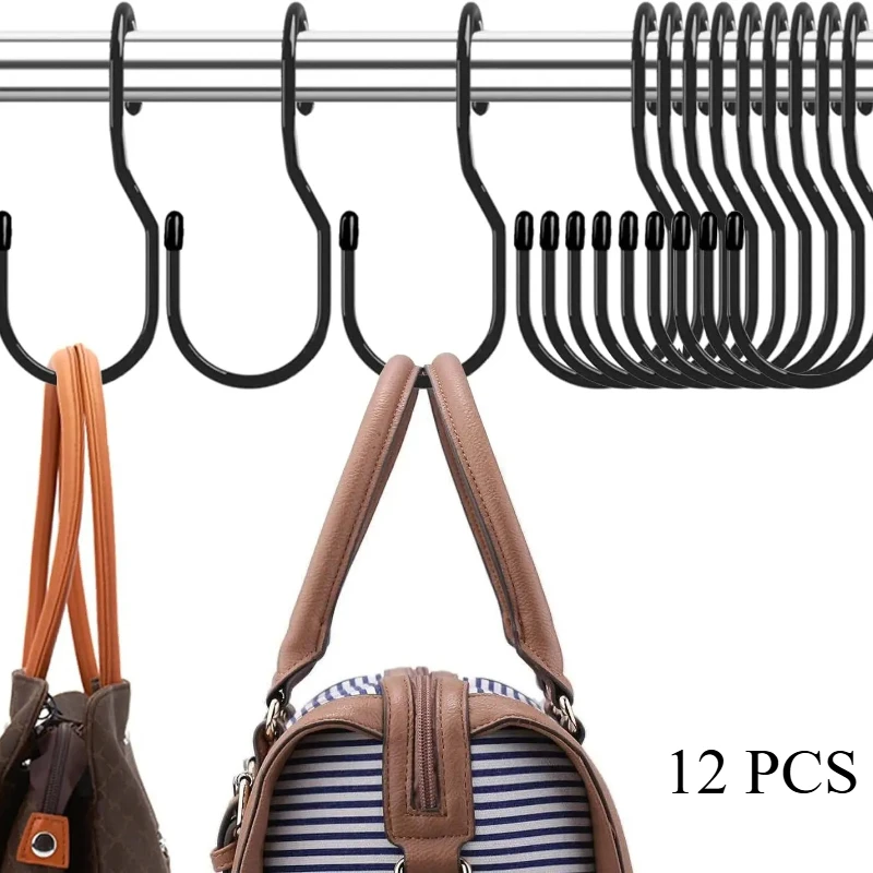 12pcs S Shape Hooks For Closet Hanging Twist Design Metal Bags Hangers 5 Inch Rod Hooks For Hats Clothes Pans Pots Kitchen Organ