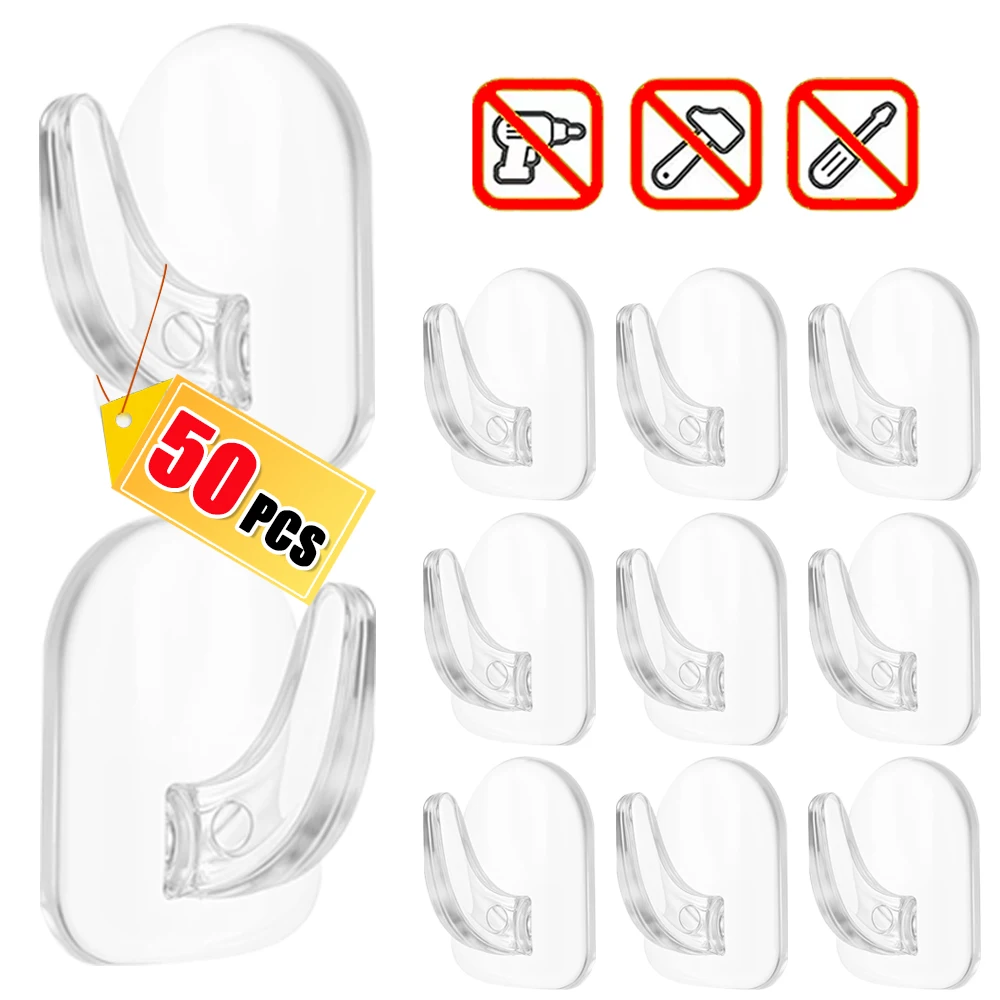 50/10PCS Mini Clear Wall Hooks Self Adhesive Transparent Sticky Hanger Wall Decor Hook Home Kitchen Bathroom Storage Organizers