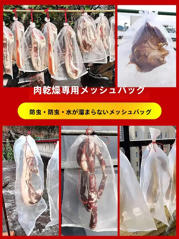 Nylon Me Bag for Drng Cured Meat Bird And Insect Proof Ham Drng Net Bag Double Layer Handmade Chinese Sle Storage Basket