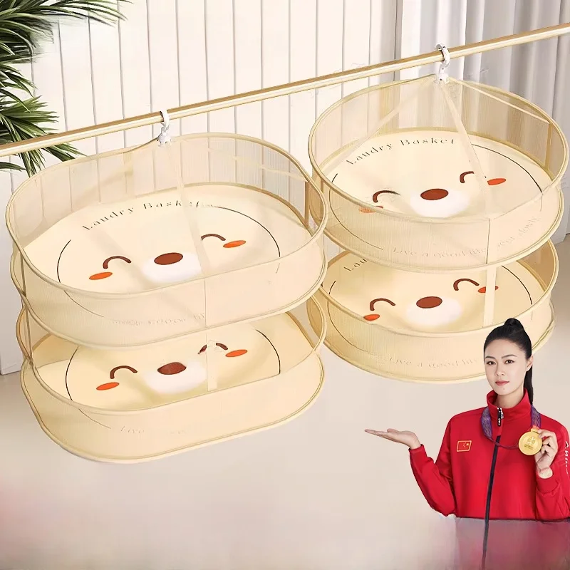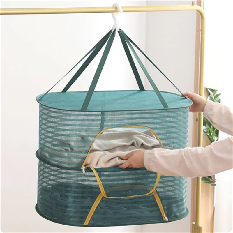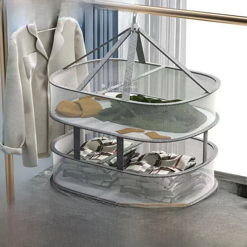 New Double Layer Clothes Drng Basket Sweater Underwear Net ket Clothes Hanger Staable Laundry Storage Organizer