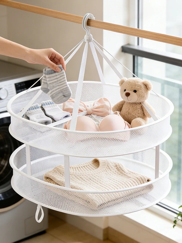 1/2 Layer Clothes Dryer Basket With Hanging Hook Fine Mesh Polyester Household Towels Foldable Baby Sweater Drying Rack For Home